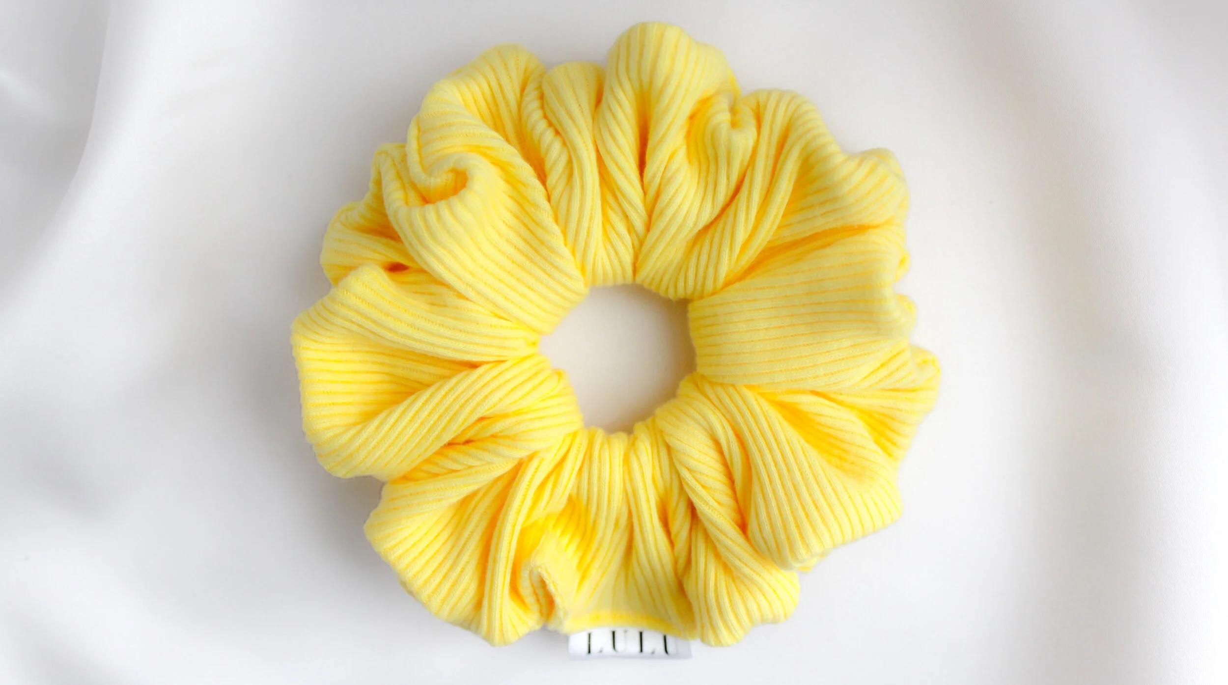 This soft baby pink ribbed scrunchie is ideal for comfort and easy styling.